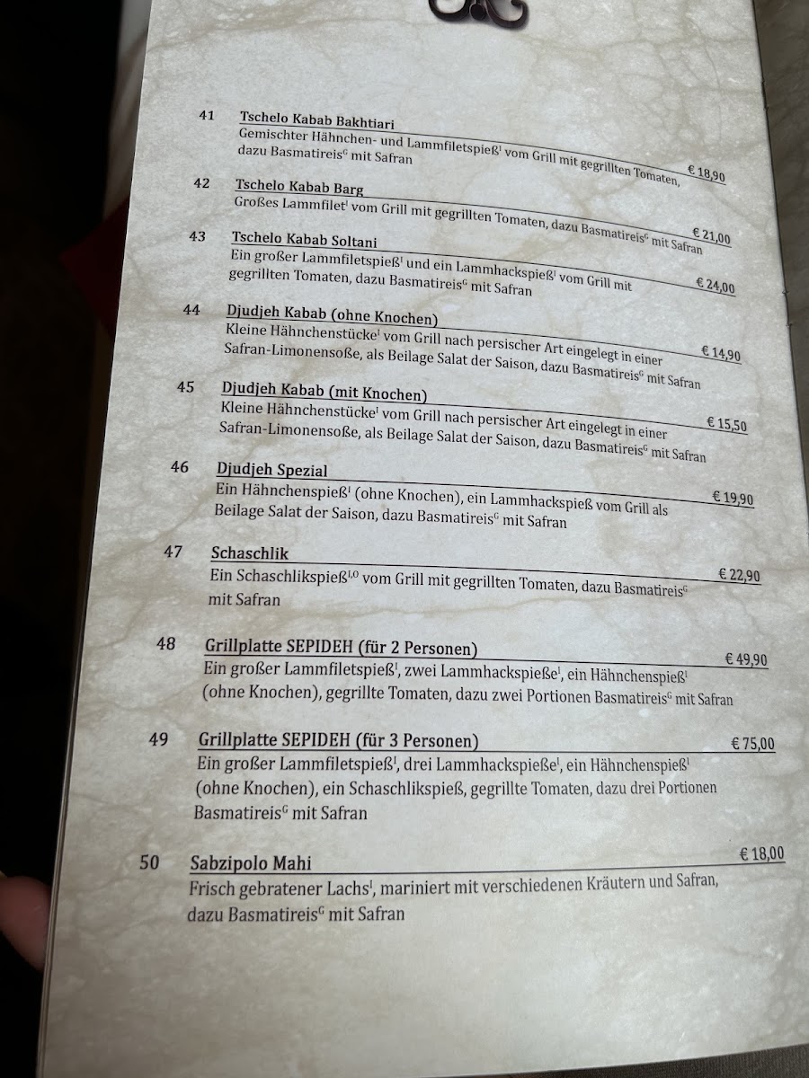 Welcome to Sepideh Restaurant, where authentic Iranian cuisine shines in the heart of Hamburg. Located at Hammer Str. 5, this elegant eatery captures the essence of Iranian culture, creating a refined atmosphere perfect for family gatherings or special occasions.
